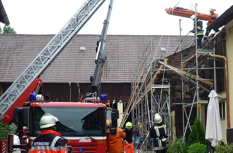 Neben Polizei und BRK war auch die Feuerwehr Kronach vor Ort. Die Brandschützer nahmen die Rettung des jungen Mannes durch das Scheunendach vor.