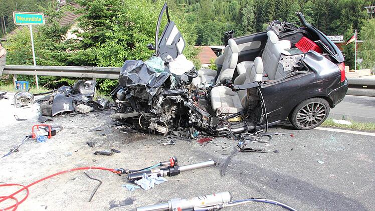 Den Unfall verursachte ein Pickup-Fahrer aus dem Kreis Kronach. Er fuhr auf der Bundesstraße 173 Richtung Wallenfels und kam in Höhe Neumühle nach links auf die Gegenfahrbahn. Zunächst streifte der Pickup den Sprinter eines Autoteile-Anbieters, dann krachte er mit voller Wucht gegen einen Audi, der auf die Leitplanke katapultiert wurde. Der Pickup-Fahrer konnte relativ schnell aus seinem total demolierten Wagen gerettet werden, die Rettung des Audi-Fahrers aus dem total zusammengeschobenen Wrack dauerte über eineinhalb Stunden. Der Mann war so stark eingeklemmt, dass man langsam vorgehen musste. Der junge Mann war zwar schwer, aber nicht lebensgefährlich verletzt. Er war während der über eineinhalbstündigen Befreiungsversuche ansprechbar.