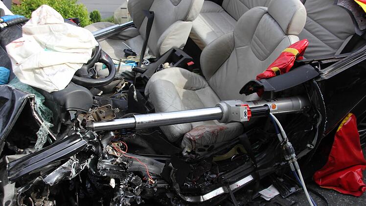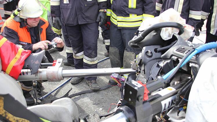 Der Audi war so stark deformiert, dass die Feuerwehrleute mit größter Vorsicht vorgehen mussten. Langsam und Schritt für Schritt musste der Audi an Fahrer- und Beifahrerseite "gedehnt" werden, erst mit dem Rettungsspreizer, dann mit hydraulischen Stempeln.