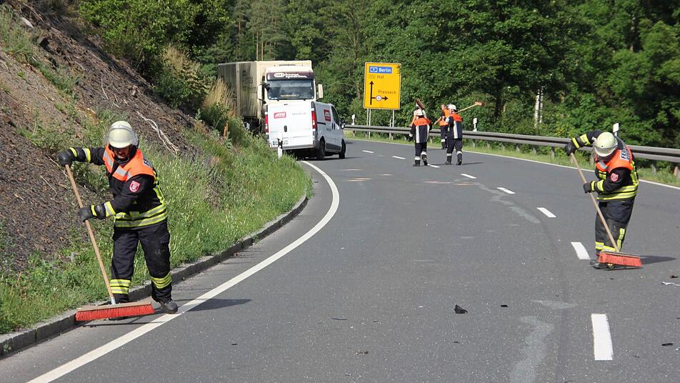 Die viel befahrene Bundesstraße 173 war mehrere Stunden total gesperrt. Die Feuerwehr leitete großräumig um. Schon in Erlabrück schickte man die Autofahrer Richtung Steinwiesen. Doch dann tat sich ein weiteres Hindernis auf: Bei Dürrenwaid ist die Staatsstraße wegen Brückenbauarbeiten gesperrt. Wer da nicht ortskundig war und wusste, dass er über Schlegelshaid und Wolfersgrün weiterfahren musste, hatte einen riesigen Umweg vor sich.