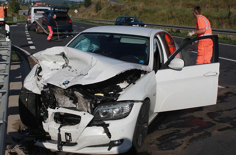 Hierbei übersah er einen BMW, der von einer 20-jährigen Frau gesteuert wurde und auf der B 303 in Richtung Johannisthal unterwegs war. Um einen Zusammenstoß zu vermeiden, lenkte die Frau ihren Pkw noch nach links. Die beiden Fahrzeuge trafen sich jedoch etwa in der Fahrbahnmitte fast frontal. Der Zusammenstoß war so heftig, dass der Audi mehrere Meter nach hinten geschleudert wurde und sich drehte. Der BMW geriet auf die Gegenfahrbahn und zog, weil er auf Grund der starken Beschädigungen nicht mehr lenkbar war, in einem Bogen nach rechts, wo er gegen die Leitplanke krachte.