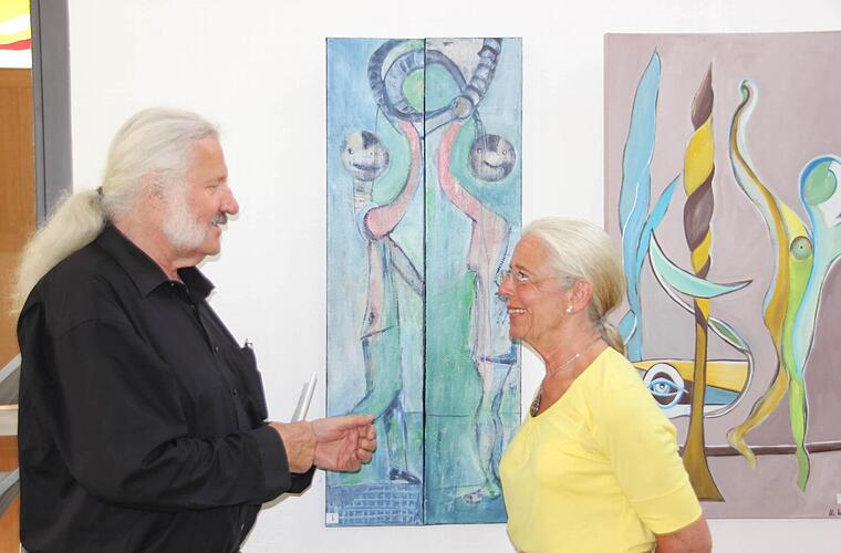"In meinem Kopf ist ein Kaleidoskop - es verwackelt jedes Mal zu einem anderen Muster", beschreibt Karin Schöntag ihre Herangehens weise, Bilder zu malen. Sie hat ein großes Repertoire an verschiedenen Werken, die von abstrakten bis zu gegenständlichen Motiven eine große Bandbreite erreichen.