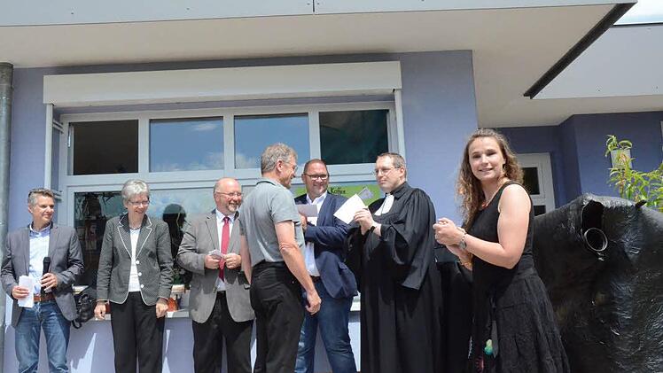 Dekanin Dorothea Richter gratulierte im Namen des Dekanats zur Erweiterung des Kindergartens. Träger der Kita ist die evangelische Kirchengemeinde Weißenbrunn. Pfarrer Christoph Teille segnete den Erweiterungsbau.