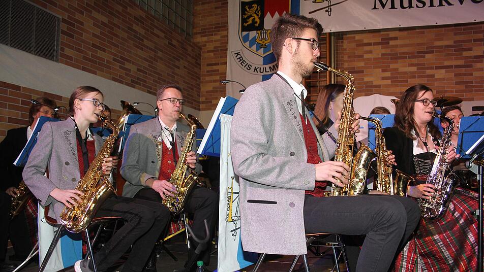 Zum Konzertabend in der Turnhalle kamen so viele Freunde der Blasmusik, dass die Burghaiger Veranstaltungshalle aus allen Nähten platze. Beim trutzigen Marsch "Der alte Dessauer" bewies Dirigent Daniel Richter, dass er nicht nur mit dem Dirigentenstab umgehen kann. Richter sorgte für ein wunderbares Trompeten-Solo, Maximilian Schaller übernahm den Taktstock.