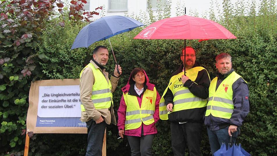 Schon morgens um halb sechs Uhr standen sich die Streikbereiten die Beine in den Bauch. Arbeitnehmer des Gewürzunternehmens Raps und der ausgegliederten Logistikfirma LogSpice harrten trotz Regenwetters aus. Bis um halb neun Uhr demonstrierten sie vor den Toren des Kulmbacher Gewürzunternehmens ihre Bereitschaft dazu, auch in einen echten Streik zu gehen.