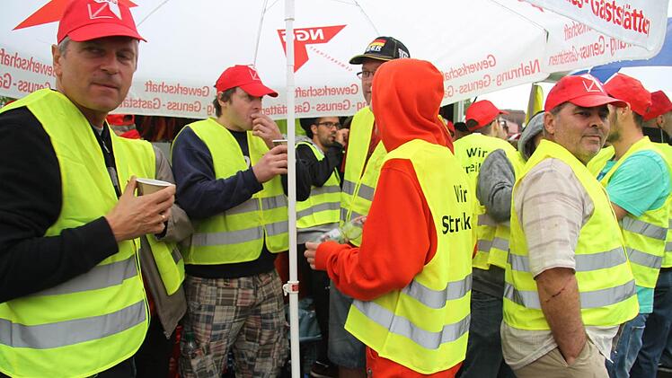 Wird Betriebsfest abgesagt? Bei der Betriebsversammlung hatte Geschäftsführerin Johanna-Maria Schaecher im Vorfeld schon angekündigt, dass im Falle eines Warnstreiks das Betriebsfest zum 90-jährigen Firmenbestehen abgesagt werde. "Aber ich denke, das wird schon immer noch Frank Kühne entscheiden", kommentierte Betriebsrat Detlef Ramming. Die Streikwilligen ließen sich nicht einschüchtern und gaben sich kampfbereit.