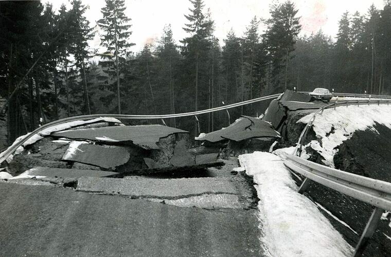 Was geschah damals, an jenem 16. Februar 1979? Bereits am Vortag, an einem Donnerstag traten Risse in der Teerdecke auf. Der Mainleuser Bürgermeister Heinz Hugel und Vertreter der Verkehrsbehörde besichtigten die Gefahrenstelle und sperrten sofort die Straße. Dadurch wurden folgenschwere Unfälle verhindert.