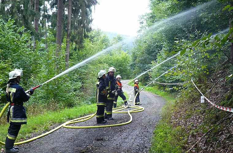 Kurz von 15 Uhr gab Kreisbrandinspektor Horst Tempel den Befehl "Wasser halt!". Damit war die Übung beendet.