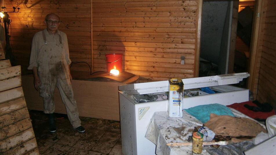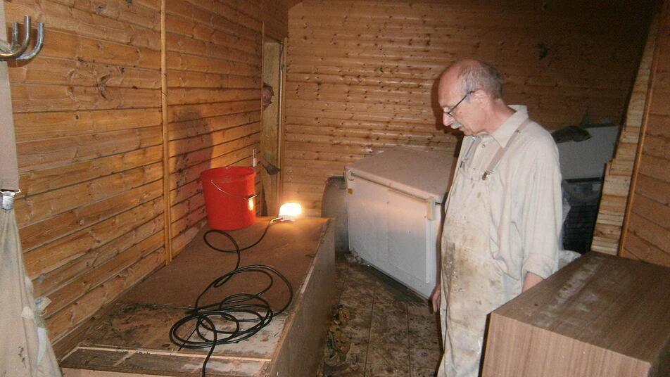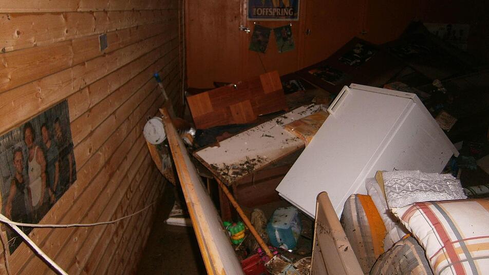 Erst gegen 2 Uhr war sein Keller wieder begehbar, konnte er sehen, was die Fluten bei ihm angerichtet haben: eingedrückte Türen, herausgerissene Holzwände, bei den Kastners war nichts mehr da, wo es sein sollte. Das Wasser schwemmte die zwei Gefriertruhen, die drei Kühlschränke auf, vernichtete das gesamte Büro. Unterlagen, Versicherungspolicen, Ausweise, Fotos ("Eigentlich unser ganzes Leben") - alles verloren. Auch die Heizung ist kaputt. Den Schaden kann der 60-Jährige nur schätzen. "Bestimmt 100.000 Euro." Es wird wohl Wochen dauern, bis alles aus- und aufgeräumt und sauber ist.