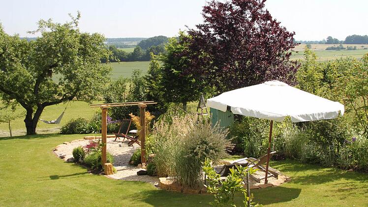 Das Anwesen von Stefanie und Jürgen Kolb liegt am Ortsrand von Berndorf, direkt am Wald. Ab und zu kommen Rehe und Hasen in den großen Garten. Mitten im Grün eine Sitzgarnitur. Idylle pur. Am Sonntag, 30. Juni, öffnet das Ehepaar in Berndorf 71 ihr kleines Paradies für Besucher beim Tag der offenen Gartentür, der heuer in den Thurnauer Ortsteilen Berndorf, Menchau und Leesau stattfindet.