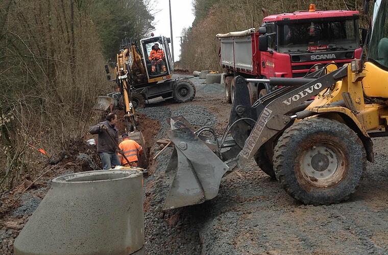 "Am Montag werden wir mit dem Kanal fertig", erklärt Polier Jürgen Ender von der Firma Stratebau zufrieden. Danach sei die Sickerleitung an der Reihe, ehe der Frostschutz eingebaut und der Asphalt aufgebracht werden können. "Dann sind wir schon fertig", sagt der erste Mann auf der Baustelle. Mitte Mai wird das sein, schätzt der Fachmann. Vorausgesetzt das Wetter spielt mit.
