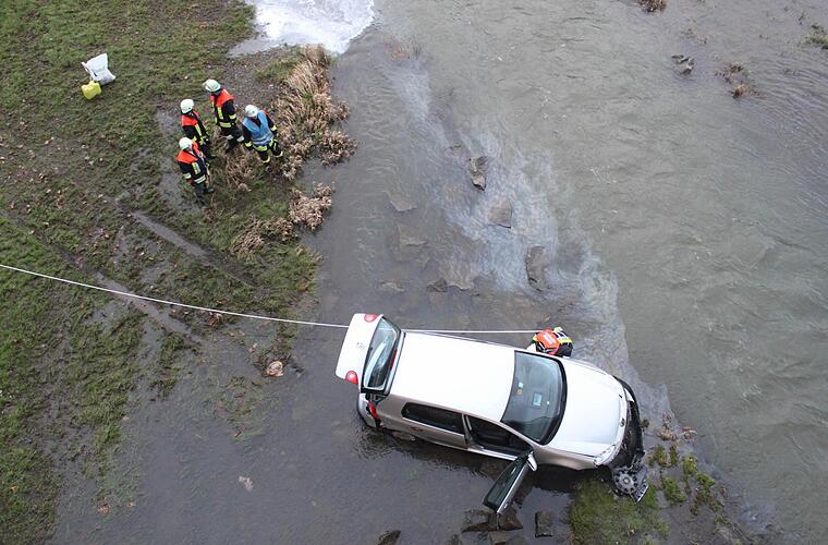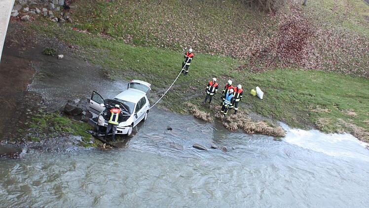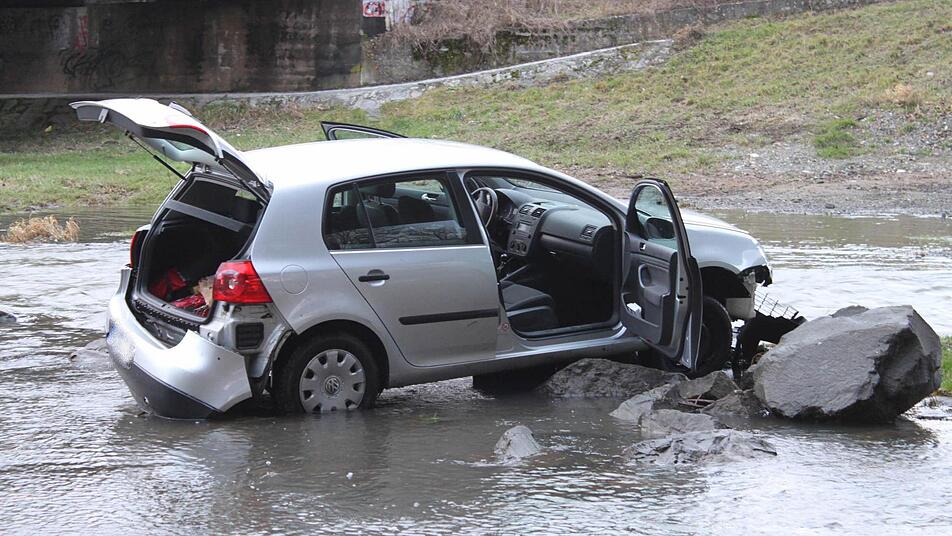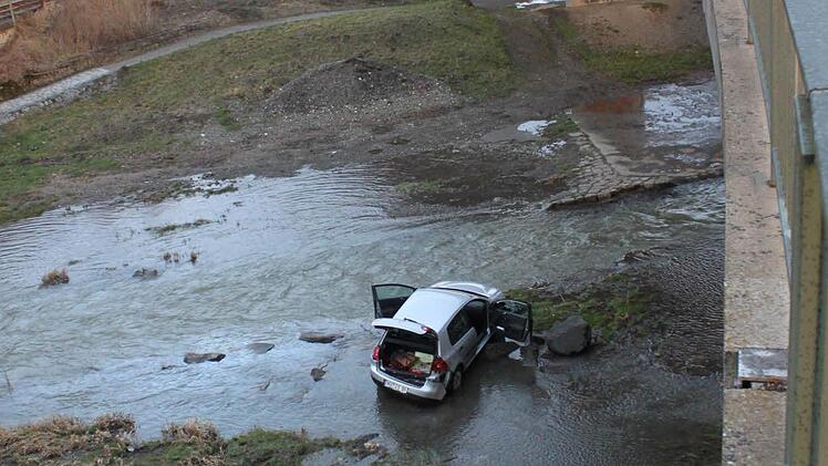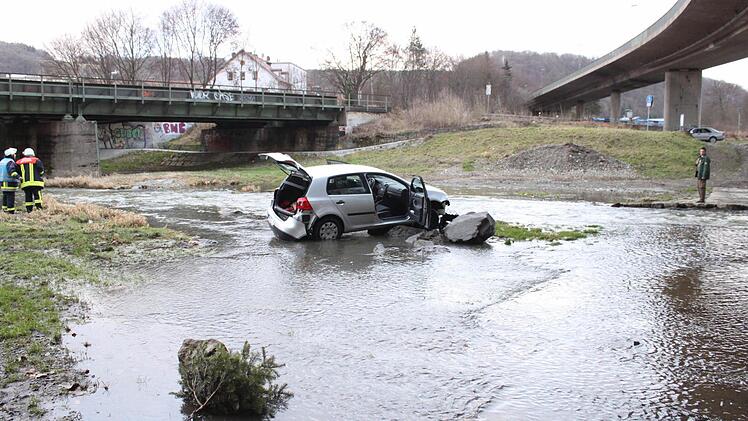 Kaum zu glauben: Eine 78-Jährige schläft am Steuer ihres Autos ein, fährt über einen Bürgersteig, verletzt dabei einen Fußgänger, durchbricht ein Geländer, um dann etwa 50 Meter über eine Wiese zu rumpeln, einen Abhang hinunter zu fahren, das Ufer der Flutmulde unter der Berliner Brücke zu passieren, um schließlich auf einem Stein im Wasser aufzusitzen.