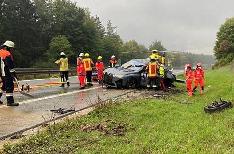 Feuerwehren müssen 37-Jährige aus BMW bergen - riesiger Rückstau auf A70