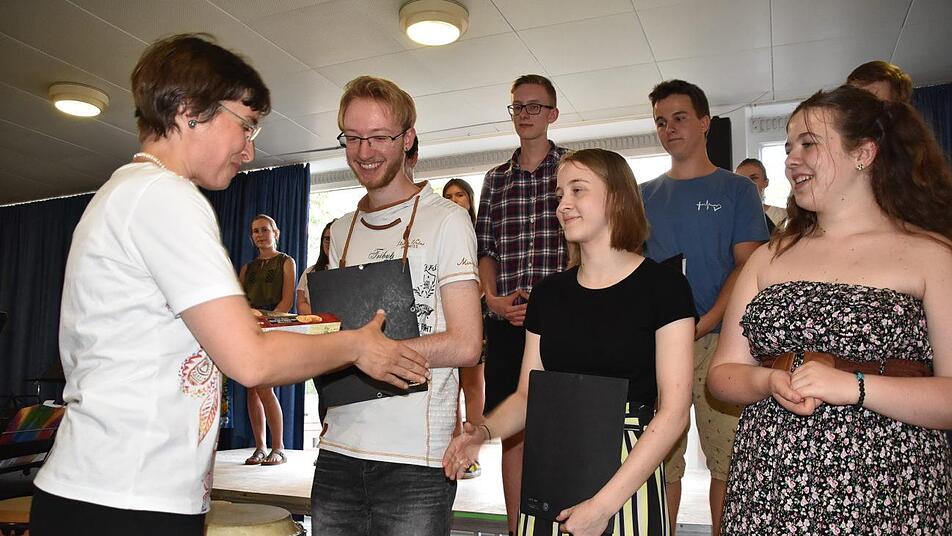 Mit "All I Have to Do is Dream" und "Mamma Mia" stimmte die Klasse 9MC auf die finale Runde des Schulchors ein, bei dem unter anderem Theresa Dauer als Gesangssolistin mit dem Spiritual "Oh Happy Day" überzeugte. Ein gelungener Abend, bei dem die Mitwirkenden ihre aufrichtige Freude am Musizieren eindrucksvoll präsentierten. Sogar die drei Abiturienten Sarah Oberkofler, Dario Rosenbusch und Amelie Festag, die eigentlich schon keinen Unterricht mehr haben, ließen es sich nicht nehmen, dieses Konzert mit zu gestalten. "Die drei haben ihr Abitur auch noch mit sehr guten Noten absolviert", lobte Schulleiterin Ulrike Endres und vermerkte mit einem Augenzwinkern: "Musik macht anscheinend doch schlau!"