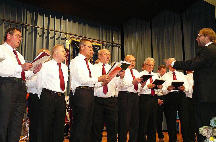 Es ist schon eine Seltenheit, dass zwei Männerchöre - noch dazu in benachbarten Dörfern - im selben Jahr aus der Taufe gehoben werden. Beide Ensembles verstehen sich zudem Haustür an Haustür prächtig und haben in den zurückliegenden Jahrzehnten schon auf vielen Sängerfesten, Liederabenden und Chorkonzerten ihr Publikum begeistert. Auf Grund der demographischen Entwicklung haben sich die zwei Männerchöre seit fünf Jahren zu einer Singgemeinschaft zusammengeschlossen, um weiterhin in starker Besetzung ihrem Hobby frönen zu können. Das dieser Schritt richtig war, stellten die beiden Vereine am Samstag vor vollem Haus in der Steinachtalhalle unter Beweis. Zur Jubiläumsveranstaltung hatten sie sich sieben Gastchören aus dem Landkreis eingeladen.