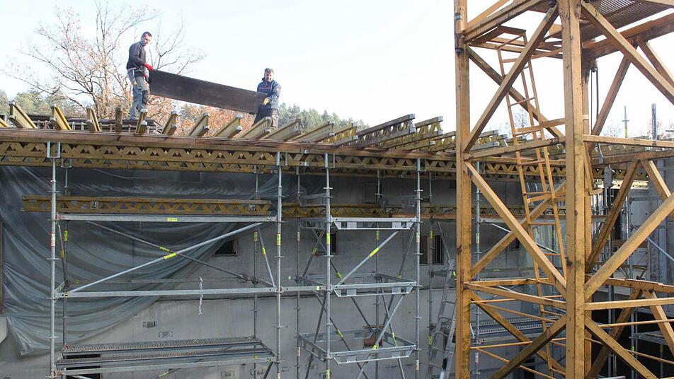 Dekan Jürgen Zinck staunt über den Baufortschritt seit seinem letzten Besuch in der Weihermühle, freut sich schon auf das Richtfest am Montag um 16 Uhr. "Wir liegen im Zeitplan." Noch ist die neue Weihermühle ein Rohbau. Kalt, zugig, Pfützen am Boden. Aber es lässt sich schon erahnen, wie es später einmal werden soll. Der Dekan stellt bei einem Rundgang die Anlage vor. "Der Eingangsbereich ist weitläufig und dient dazu, größere Gruppen im Haus begrüßen zu können." Meist kämen 30 bis 40 Kinder auf einen Schlag. "In der alten Weihermühle war das schwierig."
