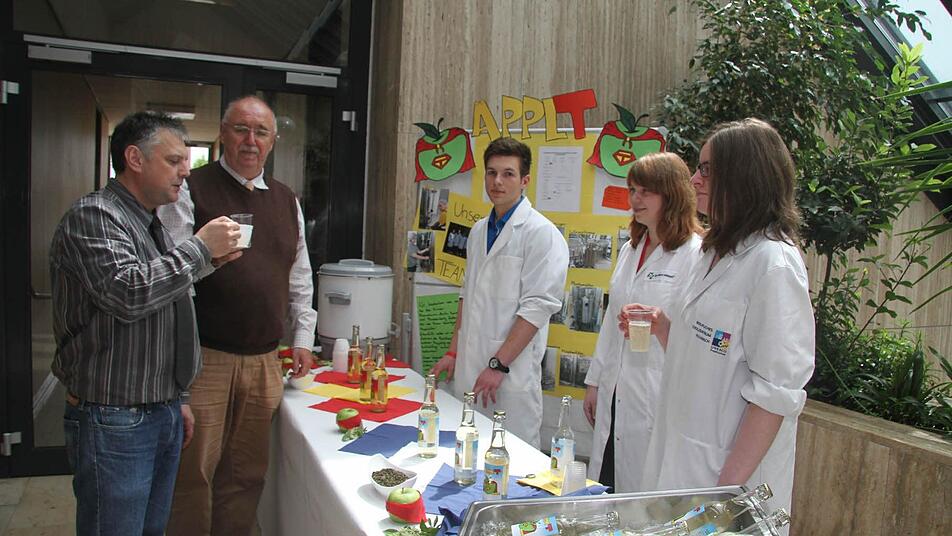 Doch nicht nur Rösch hat mit Getränken experimentiert. Auch Nicole Grybos, Marina Ott und Dominik Kirschner wollten ein neues Lebensmittel in flüssiger Form entwickeln. Auf der Basis von Tee haben sie einen ÄpplT im Superman-Design entwickelt: süffig und erfrischend.
