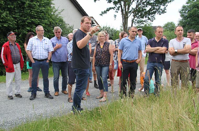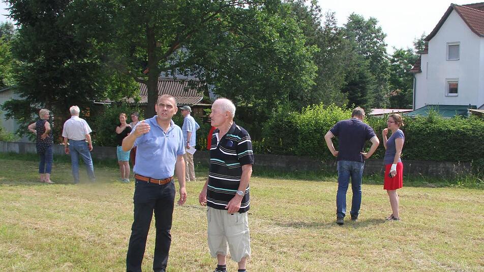 Samstagvormittag, die Sonne brennt vom Himmel. Als Bürgermeister-Stellvertreter Alexander Wunderlich mit Erich Hahn und Christian Heiß vom Ingenieurbüro IBP zum Ortstermin kommt, haben sich rund 30 Anwohner eingefunden. Sie gehören größtenteils zur Bürgerinitiative gegen die Erweiterung des Baugebiets Steigengasse, die befürchtet, dass für die Altanwohner die Hochwassergefahr noch größer wird, und machen auf Problemzonen aufmerksam.