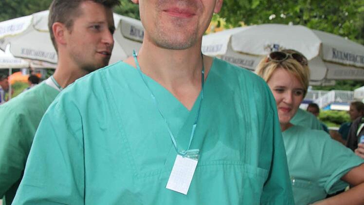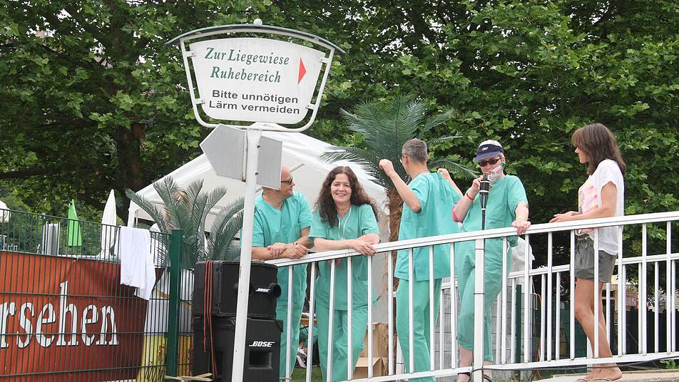 Das Klinikumteam sorgte mit seiner Kostümierung für erstaunte Gesichter bei den "normalen" Badegästen: Denn die Ärzte, Anästhesisten und Pfleger kamen in grünen OP-Kitteln.