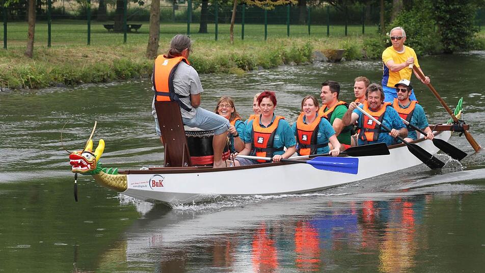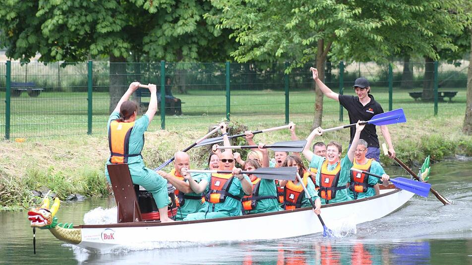 Was die Chinesen können, können die Kulmbacher auch. Zwar hat das Drachenbootrennen auf dem Weißen Main noch nicht ganz so lange Tradition, doch immerhin schon zum vierten Mal wurden die Boote mit dem furchterregenden Drachenkopf als Markenzeichen auf dem Weißen Main im Freibad zu Wasser gelassen.