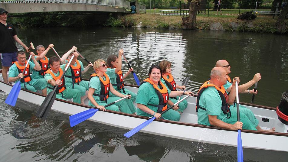 Zwölf Teams traten in diesem Jahr an. Sehr erfreulich: Viele Teams waren zum ersten Mal mit von der Partie, wie zum Beispiel das Therapiezentrum Höhler. Das Klinikum Kulmbach schickte gleich zwei Teams ins Rennen. Und auch das BRK wollte mit einem Helferteam von zehn Paddelbegeisterten sein Glück auf dem Wasser versuchen.