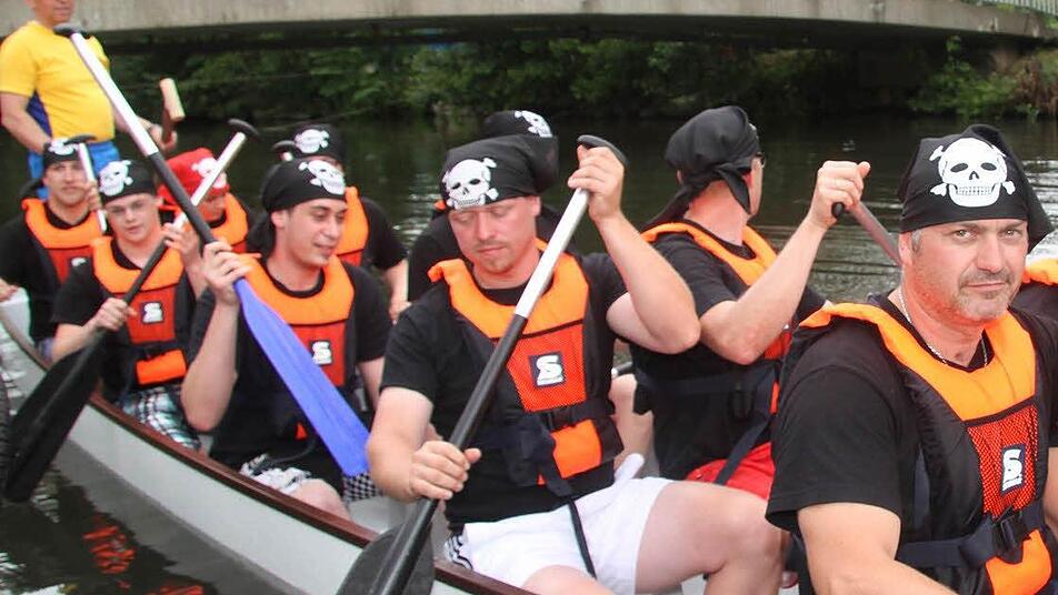 Auch ziemlich gut drauf waren die Stadtwerke-Piraten. Stadtwerke-Chef Stefan Pröschold feuerte sein Team kräftig an. Die Stadtwerke-Piraten vertrauten auf eine Frau: Angela Nützel gab auf der Trommel den Takt an - und offenbar ziemlich genau den Richtigen.