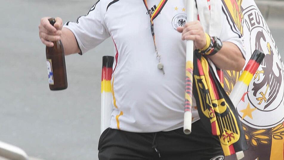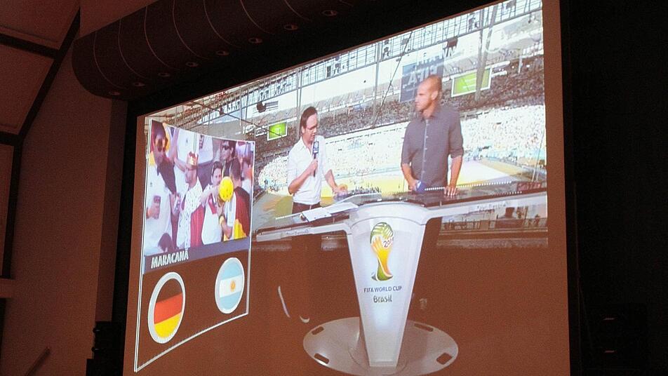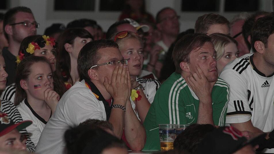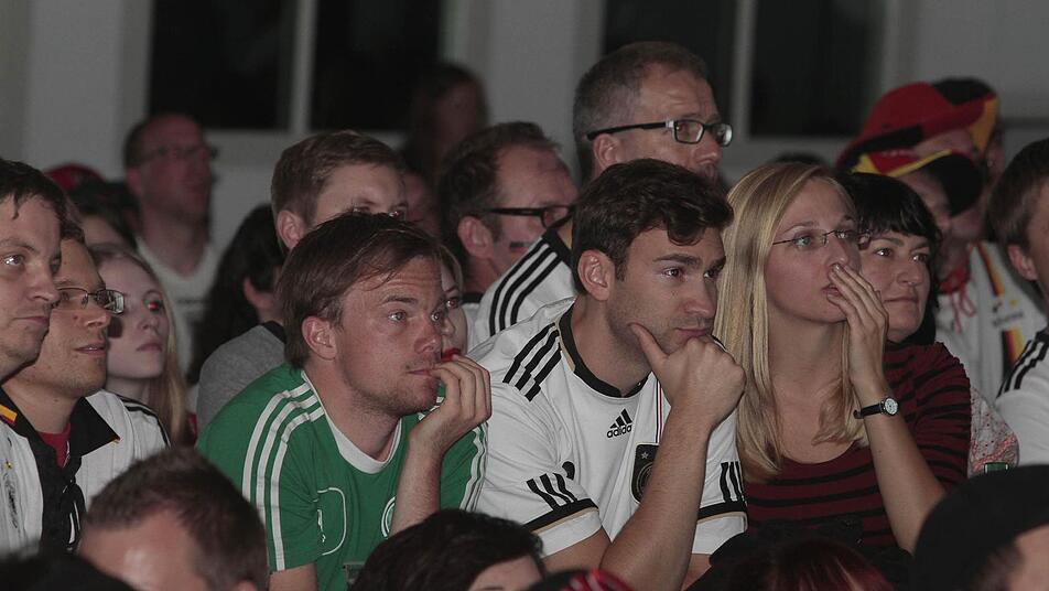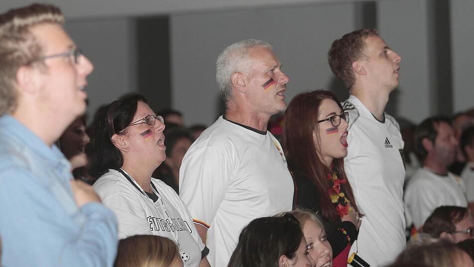 Zu Beginn gibt es kurz Ärger: Einige Besucher monieren beim Einlass, dass sie keine Fahnen mit hinein nehmen dürfen. "Wir wollen, dass jeder das Spiel gleich gut sehen kann", bittet Stadt-Pressesprecher Simon Ries um Verständnis. Er ist es auch, der im Übertragungsort Stammberger-Halle ein gutes Omen sieht: "Public Viewing hier drin gab es nur einmal, so weit ich weiß: 2010 war das, zum Tag der Franken. Deutschland siegte damals - 4:0 gegen Argentinien."