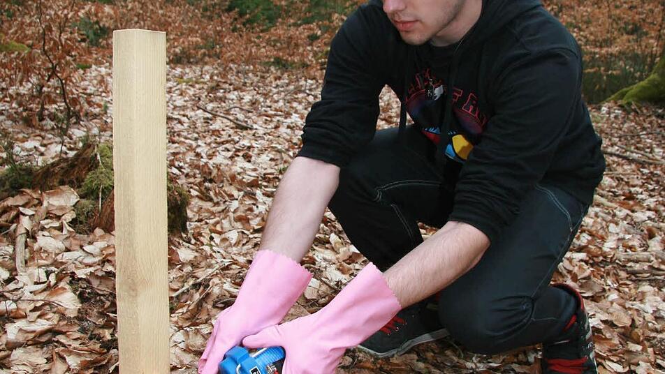 Seit Anfang März haben die Schüler im Abstand von 100 Metern drei Fichtenholzpfosten in dem Wald bei Neudrossenfeld aufgestellt. An Stellen, die ruhig unter Laubbäumen liegen, und die Unterschlupf für die scheuen Tiere bieten.