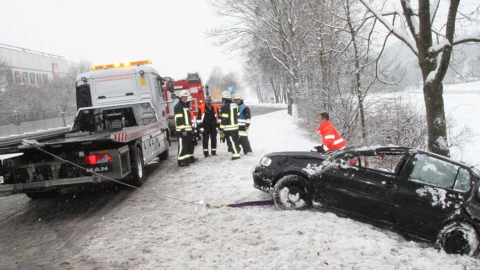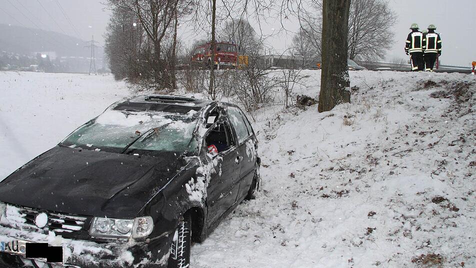 Da sie für die Straßenverhältnisse zu flott unterwegs war, geriet ihr VW Polo ins Schleudern und kam nach rechts von der Fahrbahn ab. Das Auto fuhr noch 100 Meter im Grünstreifen und stieß dann gegen einen Baum. Der Polo rollte die Böschung hinunter und blieb auf dem Dach liegen. Die junge Frau konnte sich selbst befreien und kam mit Verletzungen ins Klinikum.