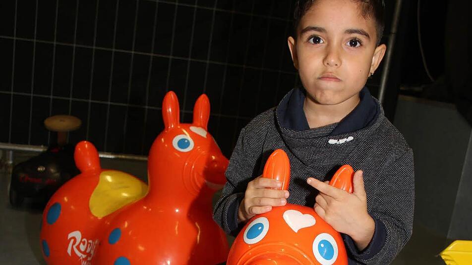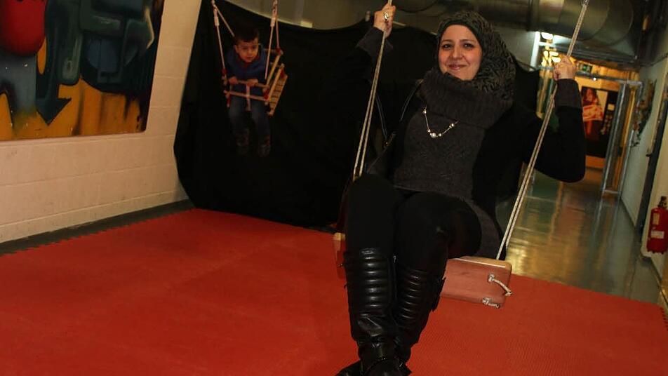 Keine Zeit zum Essen hatte Nisrine aus Syrien. Die 35-Jährige hatte ihre fünf Kinder mitgebracht. Die schwirrten umher, testeten auf dem Indoor-Spielplatz die Fahrzeuge und die Hüpfburg. Die Mutter setzte sich auf die Schaukel und genoss es, den Nachwuchs zu beobachten "Hier ist es schön", sagte die Syrerin, die wieder mal im Juz vorbeischauen will.