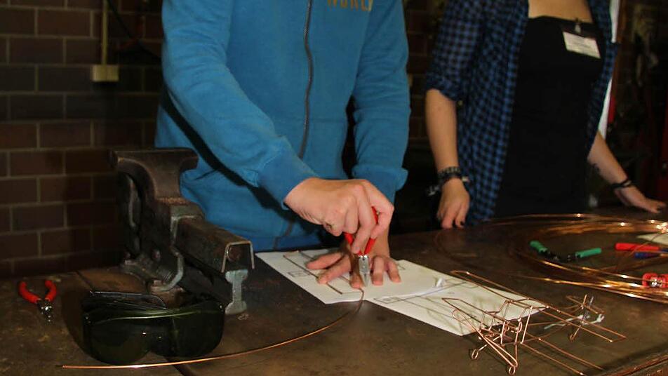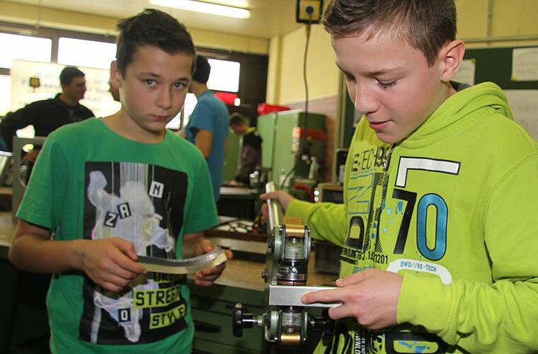 Jannik Titze ist erst 13 Jahre alt. Hochkonzentriert steht der Achtklässler, der die Max-Hundt-Schule besucht, in der Werkstatt des beruflichen Schulzentrums und versucht aus Kupferdraht nach einer Vorlage ein Flugzeug zu biegen. Lisa Köstner (20), eine Auszubildende in der Berufsrichtung Mechatronik, erklärt die Details. "Mechatroniker ist eigentlich kein Männerberuf mehr. In der Industrie gibt es unglaublich viele Hilfsmittel, der Beruf ist nicht anstrengend", erklärt sie Jannik Titze und jeder merkt ihr an, dass sie ihren Traumberuf gefunden hat. Lisa Köstner kann diesen Beruf nur empfehlen. Sie ist im zweiten Lehrjahr und lernt bei Glen Dimplex. "Ich weiß noch gar nicht, ob ich handwerklich geschickt bin", sagt Jannik Titze und möchte genau das bei der Ausbildungsmesse herausfinden. Die ersten beiden Biegungen für das Flugzeug hat er schon getätigt. Seine Konstruktion sieht allerdings nicht ganz so akkurat aus wie die von Lisa Köstner. "Ich denke, man muss schon ein bisschen ein Händchen dafür haben", sagt Titze offen und ehrlich. Er war schon im vergangenen Jahr bei der Ausbildungsmesse. "Die Ausbildungsmesse ist die Gelegenheit, um sich verschiedene Berufe anzuschauen, um sich mal die Firmen anzuschauen", sagt Jannik Titze.