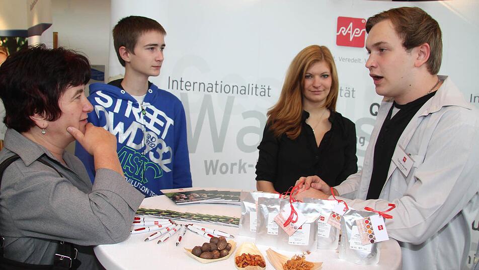 Die meisten Firmen setzen auf klassische Informationsstände. Raps beispielsweise lässt die Azubis selbst die Interessenten beraten. Steffen Weißmann (15) aus Mainleus interessiert sich für die Fachrichtung Fachinformatiker. "Ich könnte mir aber auch Elektroniker vorstellen", sagt er. In Mathe hat er jedenfalls gute Noten.