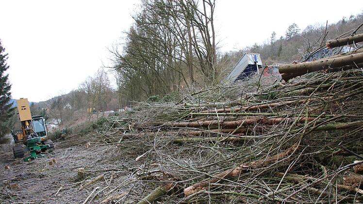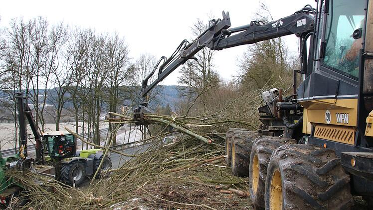 Seit Montag laufen Fällarbeiten entlang der Bundesstraße zwischen Kauerndorf und Untersteinach. Immer wieder kommt es zu einer halbseitigen Sperrung.