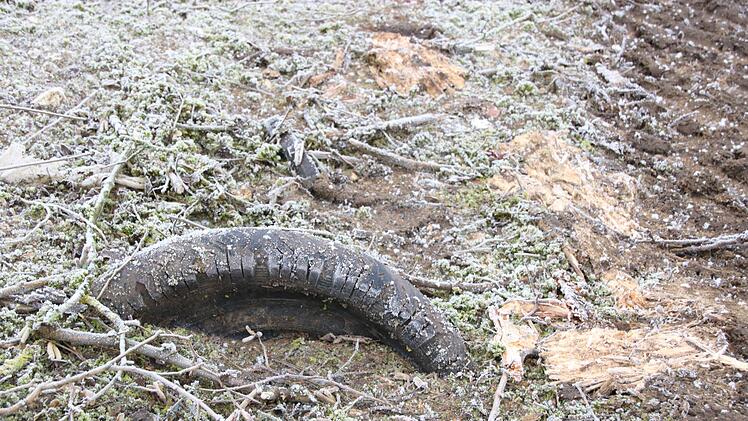 Die Bäume  müssen  aus zwei Gründen weg: So soll zum einen zwischen der Bundesstraße 289 und der Bahnlinie ein Regenrückhaltebecken entstehen. Zum anderen müssen auf der gegenüberliegenden Straßenseite - dort befindet sich später  der Tunnelbereich - jahrzehntealte Hausmüll-Ablagerungen ausgebaggert und auf einer Deponie entsorgt werden. Beim Rundgang über die Baustelle sieht man immer wieder, was sich dort angesammelt hat. So schaut ein alter Autoreifen aus dem Boden, auch auf Ziegeln und Betonbrocken sind die Arbeiter schon gestoßen.