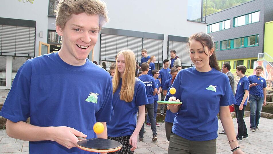 Werbung für das Mega-Event hat der Profi-Tischtennisspieler Tom Schmidtberger am MGF in Kulmbach gemacht. Er ist aktuell Weltranglisten-Zweiter und wird im nächsten Jahr bei den Paralympics für Deutschland antreten. Derzeit studiert Schmidtberger Sportökonomie in Bayreuth und hat sich Zeit genommen, um sich mit dem P-Seminar Sport des MGF zu treffen.