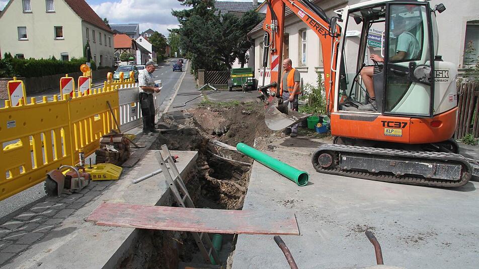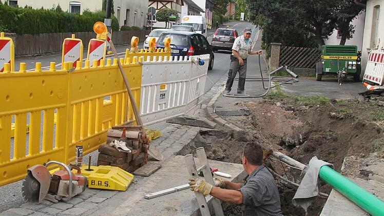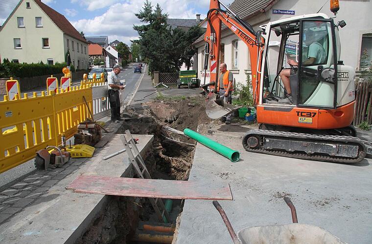 Neue Hausanschlüsse Die Bauarbeiten werden unter der Regie der Firma ASK durchgeführt und werden rund 27.000 Euro kosten. Von der Firma ASK ist derzeit in Vier-Mann-Trupp auf der Baustelle zugange. Die Arbeiter haben bereits eine 1,30 Meter tiefe Grube gegraben, verlegen die Hausanschlüsse neu.