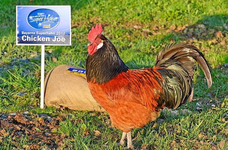 Sieg! Er hat's tatsächlich geschafft, "Chicken Joe"aus Oberlaitsch ist der Sieger-Gockel der Radio-Castingshow "Bayern sucht den Superhahn".
