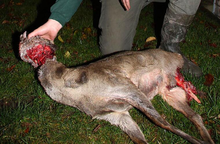 Die beiden Rehe waren übel zugerichtet. Bei einem Tier waren Schlegel und Hals gefressen. Das andere wurde gehetzt, in Hals, Seiten und Hinterläufe gebissen, bis es schwer verletzt liegen blieb und von einem Jäger erlöst wurde.