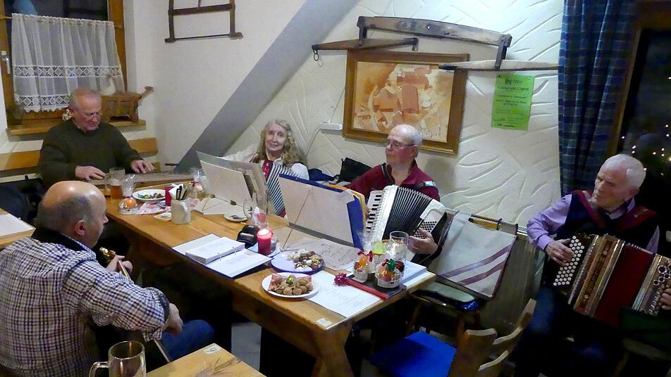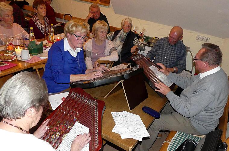 Lilly Scholz, von Anfang an dabei, hatte in ihrer Chronik noch einmal die wichtigsten Stationen dieser zehn Jahre zusammengefasst. Sie erinnerte an die Besuche des Bayerischen Fernsehens und des Bayerischen Rundfunks und an die Musiker, die diese Abende seit Jahren mitgestalten. Dazu gehören Erich Löw mit seiner Zither, Erna Will, Gerhard Schumann, Manfred Holl, Gerald Rampisch, Heinz Preis, Paul Zahorsky, Robert Hümpfner. Und Allrounder Hansi Herrmann, der mit seiner Teufelsgeige oft genug die Lacher auf seiner Seite hat. Danach überraschten Ingrid und Hans Dörfler mit einem selbstverfassten Lied. Nach einer Pause und dem Auftritt von Jochen Scholz als Nikolaus spielte die Zithergruppe "Rangasaiten" auf. Jochen und Lilly Scholz, Dieter und Inge Popp, alle Mitglieder des Frankenwaldvereins, nutzen die monatlichen Termine des "Wirtshaussingens" regelmäßig zu einer Wanderung von Kulmbach nach Tennach und zurück. Erst seit 2009 beschäftigen sie sich mit dem Zitherspiel.