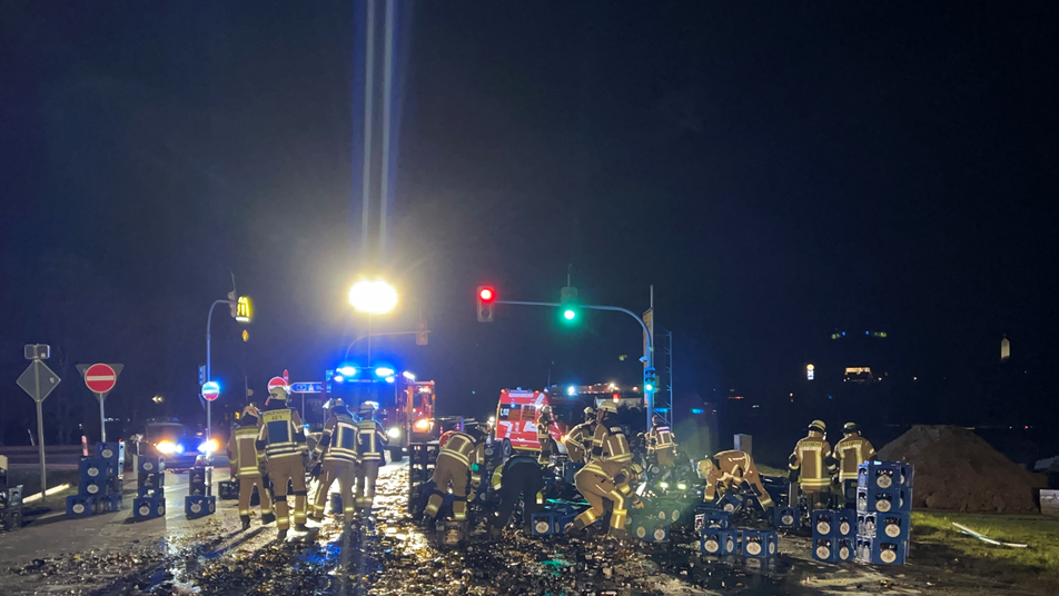 Aufgrund der Verunreinigung der Fahrbahn mit mehreren Hundert Flaschen Bier und deren Kästen konnten die Fahrzeuge nicht mal mehr an der Unfallstelle vorbeigeleitet werden, wie die Polizeiinspektion Stadtsteinach am Donnerstagmorgen (9. April 2026) berichtet.