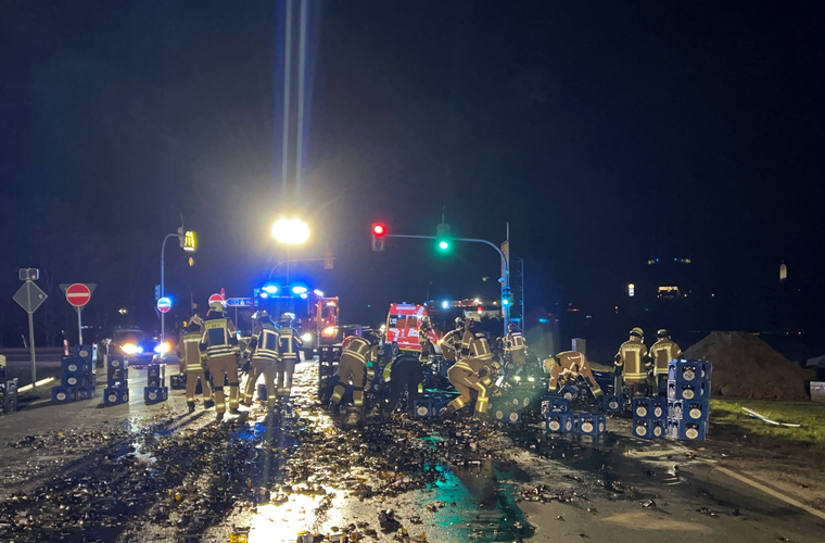 Ladung löst sich beim Abbiegen: Bierkästen blockieren B303