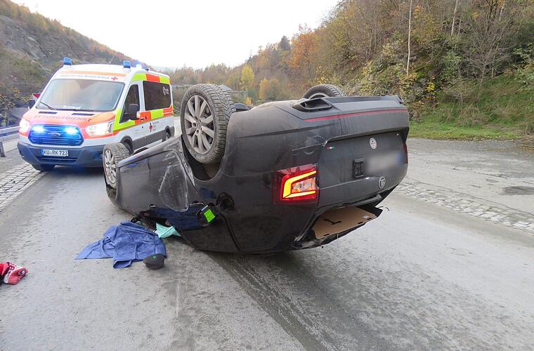Im Anschluss überschlug sich das Auto, rutschte auf dem Dach liegend ca. 60 Meter auf der Fahrbahn entlang und prallte gegen die Schutzplanke.