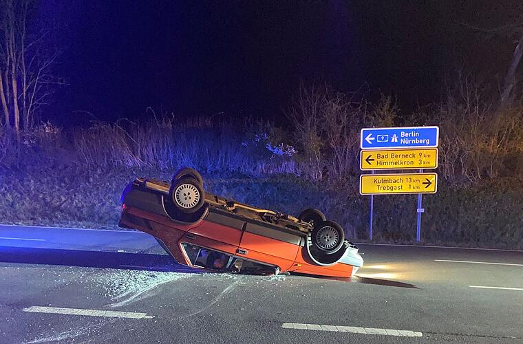 Gegen 23.15 Uhr war die 20-Jährige auf der Staatsstraße 2183 aus Richtung Schlömen unterwegs und wollte an einer Kreuzung nach links in Richtung Himmelkron abbiegen. An der Einmündung war sie zu schnell unterwegs und schlug das Lenkrad zu früh nach links ein. Dabei geriet sie mit den linken Rädern auf eine Verkehrsinsel und verlor die Kontrolle über ihr Fahrzeug. Der Fiat überschlug sich und kam in der Mitte der Fahrbahn auf dem Dach zum Liegen.