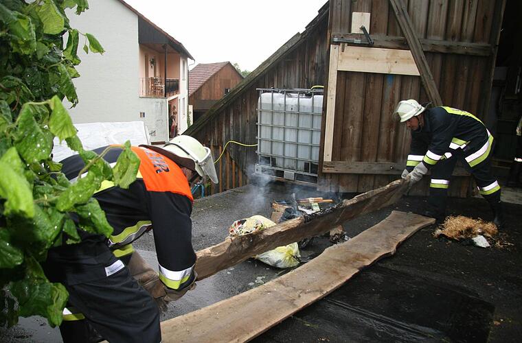 Mit vereinten Kräften trugen die Feuerwehren qualmende Bretter und Gegenstände ins Freie, um eine weitere Entzündung zu verhindern.