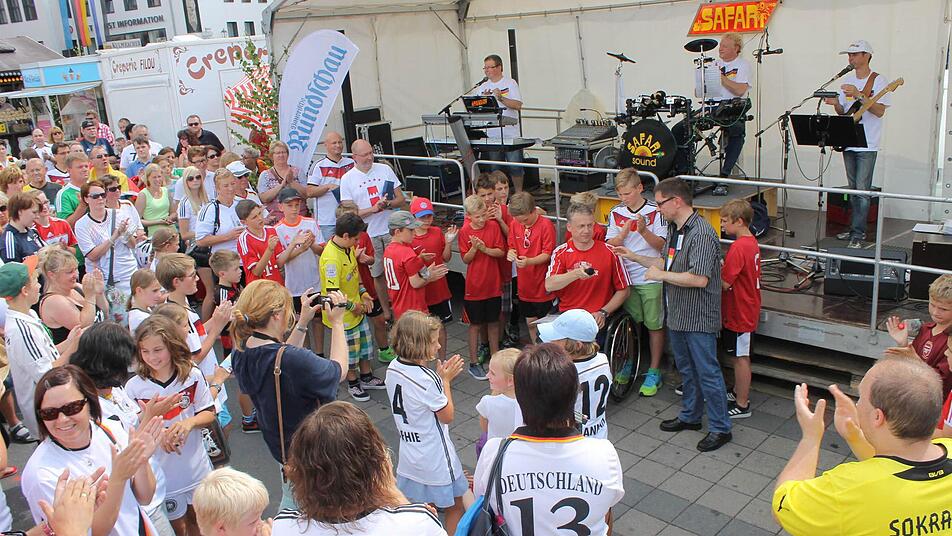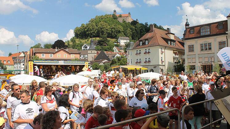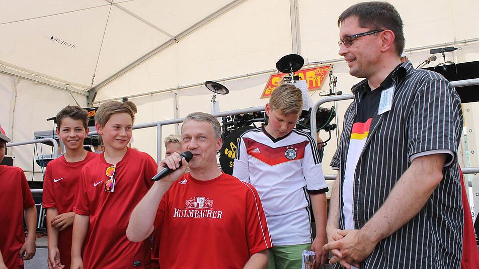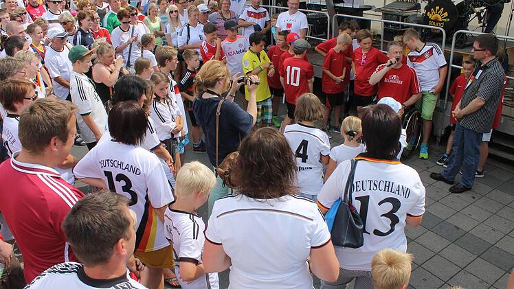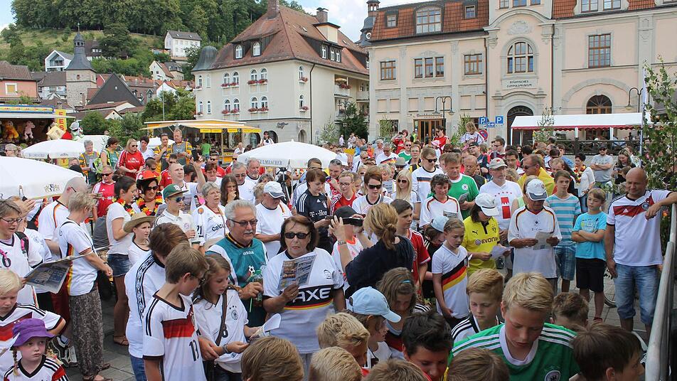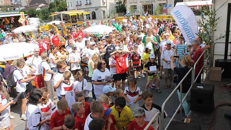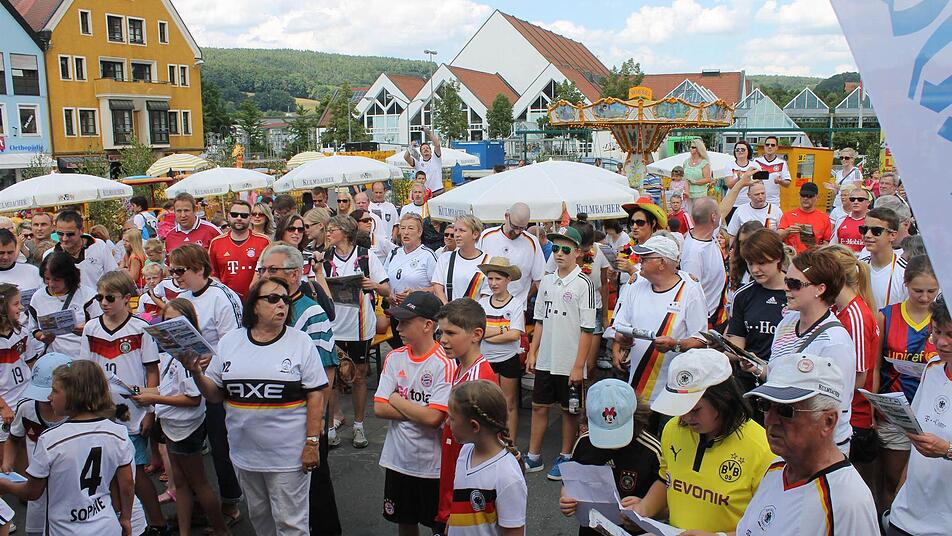 Ein bisschen fühlte man sich an diesem Nachmittag auf dem Altstadtfest wie auf dem Fußballplatz. Denn Jung und Alt, Groß und Klein versammelten sich in Trikots verschiedenster Mannschaften und Länder, angefangen vom TSV Stadtsteinach über Bayern München bis hin zur deutschen Nationalelf und stimmten bei hochsommerlichen Temperaturen gemeinsam das Lied an.