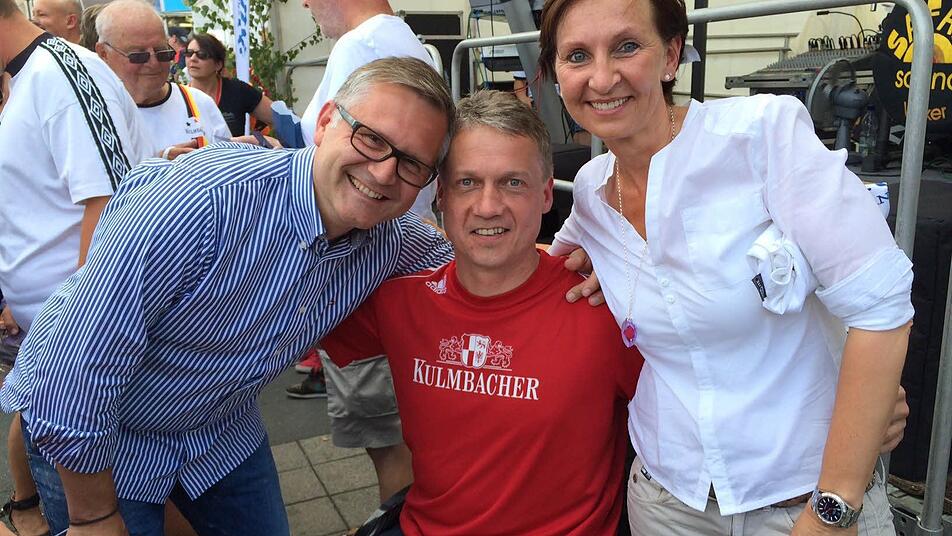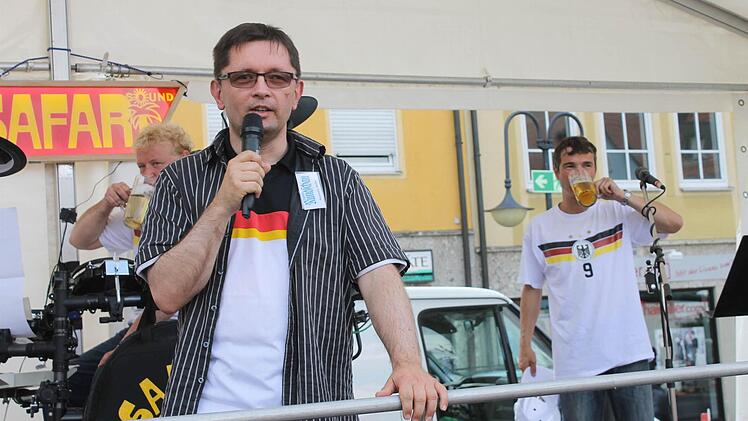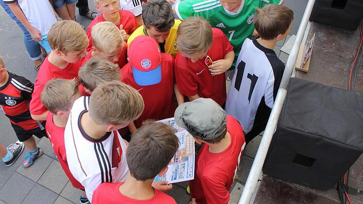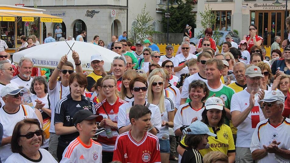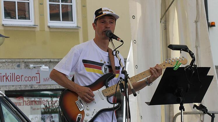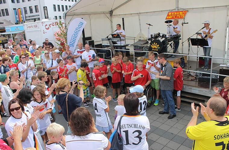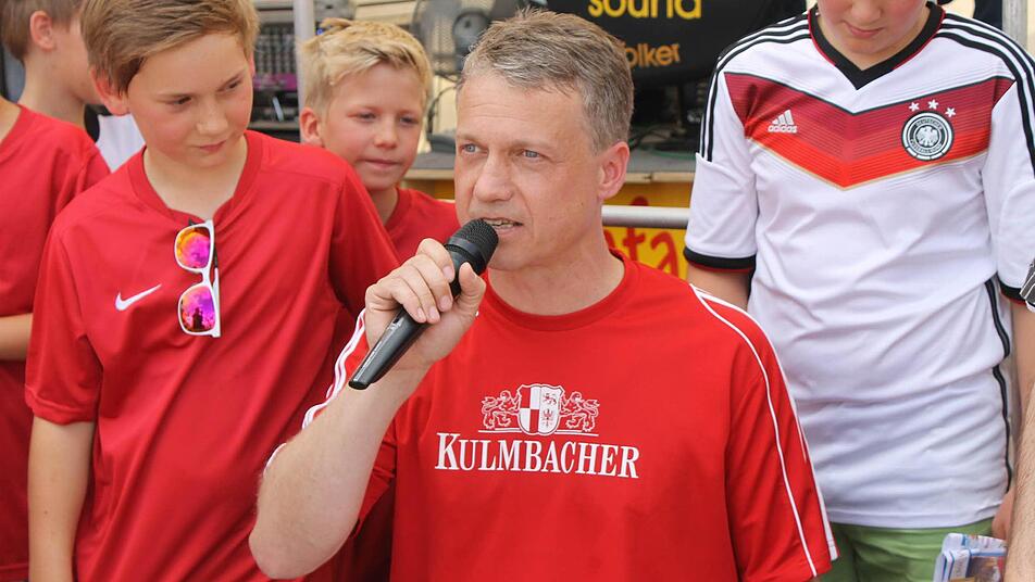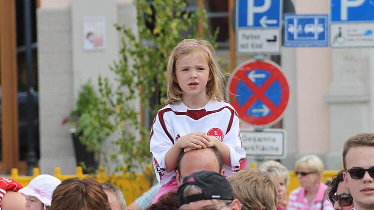 Ein bisschen fühlte man sich an diesem Nachmittag auf dem Altstadtfest wie auf dem Fußballplatz. Denn Jung und Alt, Groß und Klein versammelten sich in Trikots verschiedenster Mannschaften und Länder, angefangen vom TSV Stadtsteinach über Bayern München bis hin zur deutschen Nationalelf und stimmten bei hochsommerlichen Temperaturen gemeinsam das Lied an.