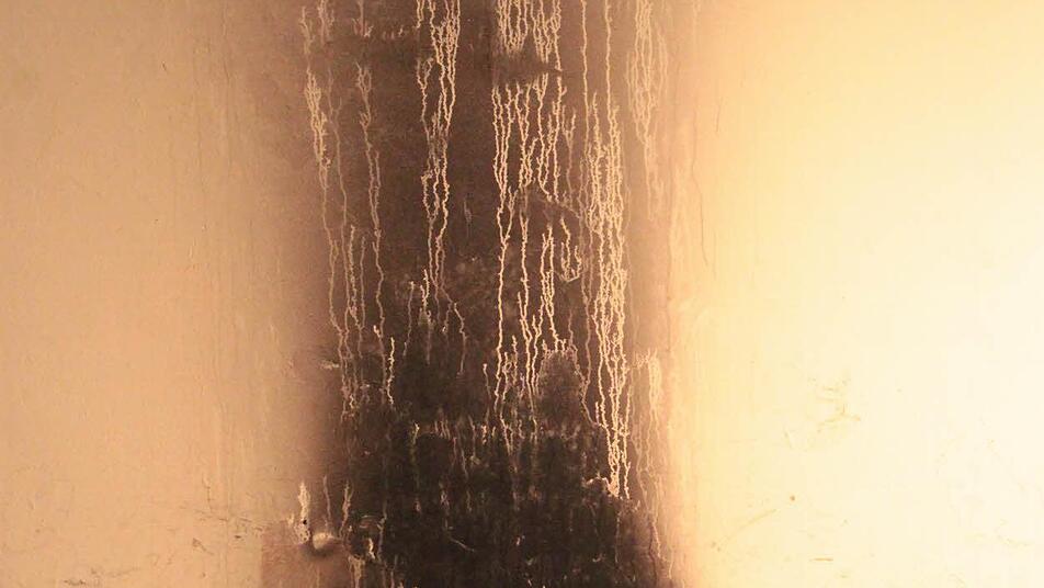 An äußeren Schäden war nicht viel zu erkennen, lediglich beim Kellerfenster war die Fassade vom Ruß schwarz.
