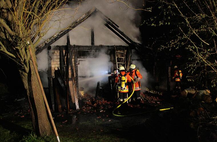 Die etwa 36 Quadratmeter große Scheune brannte trotz des Einsatzes der Wehrleute komplett nieder. Der darin befindliche Traktor wurde ebenfalls Raub der Flammen.