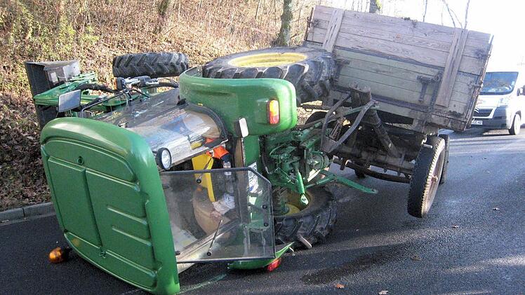 Wie die Polizei mitteilt, hatte der 38-Jährige gegen Mittag mit seinem Traktor samt Anhänger die Kreisstraße von Sessenreuth nach Wirsberg befahren. Auf der abschüssigen Strecke stellte der Mann plötzlich fest, dass seine Bremsen versagten. Um schlimmeres zu verhindern, versuchte der Landwirt geistesgegenwärtig sofort sein Gespann abzubremsen, indem er mit herabgelassenem Frontlader in die rechte Böschung fuhr. Durch den schiebenden Anhänger jedoch kippte der schräg fahrende Traktor auf die rechte Seite um und blieb auf der Straße liegen.