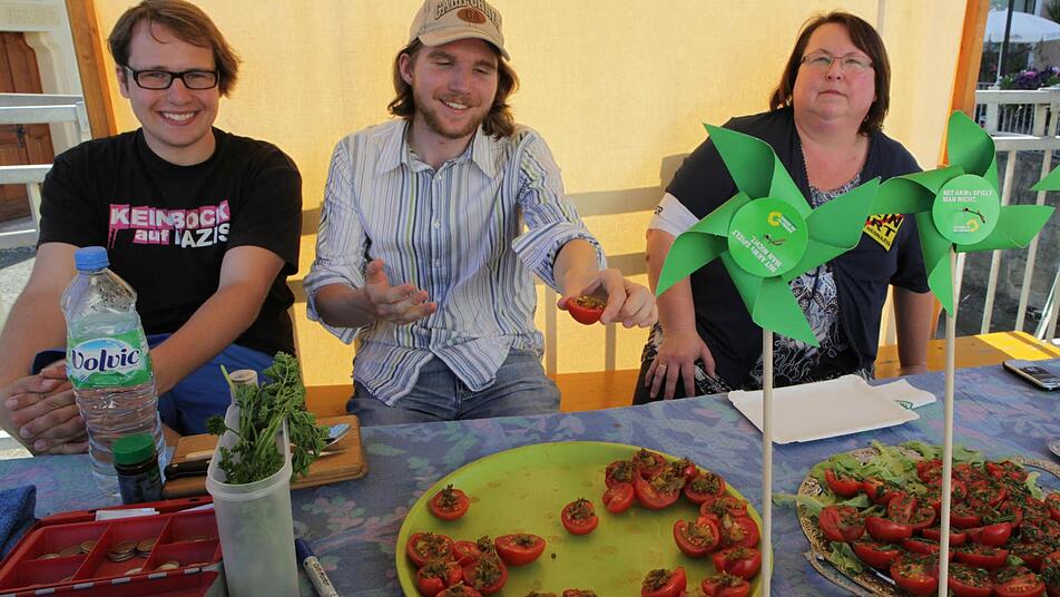 Unterdessen bereiteten Schwarzacher Bürger, Vereine und Organisationen ein friedliches Fest vor. Infostände, Flohmärkte, ein Human Soccer-Turnier und viele Spielmöglichkeiten für Kinder sorgten für ein buntes Bild in Schwarzach.